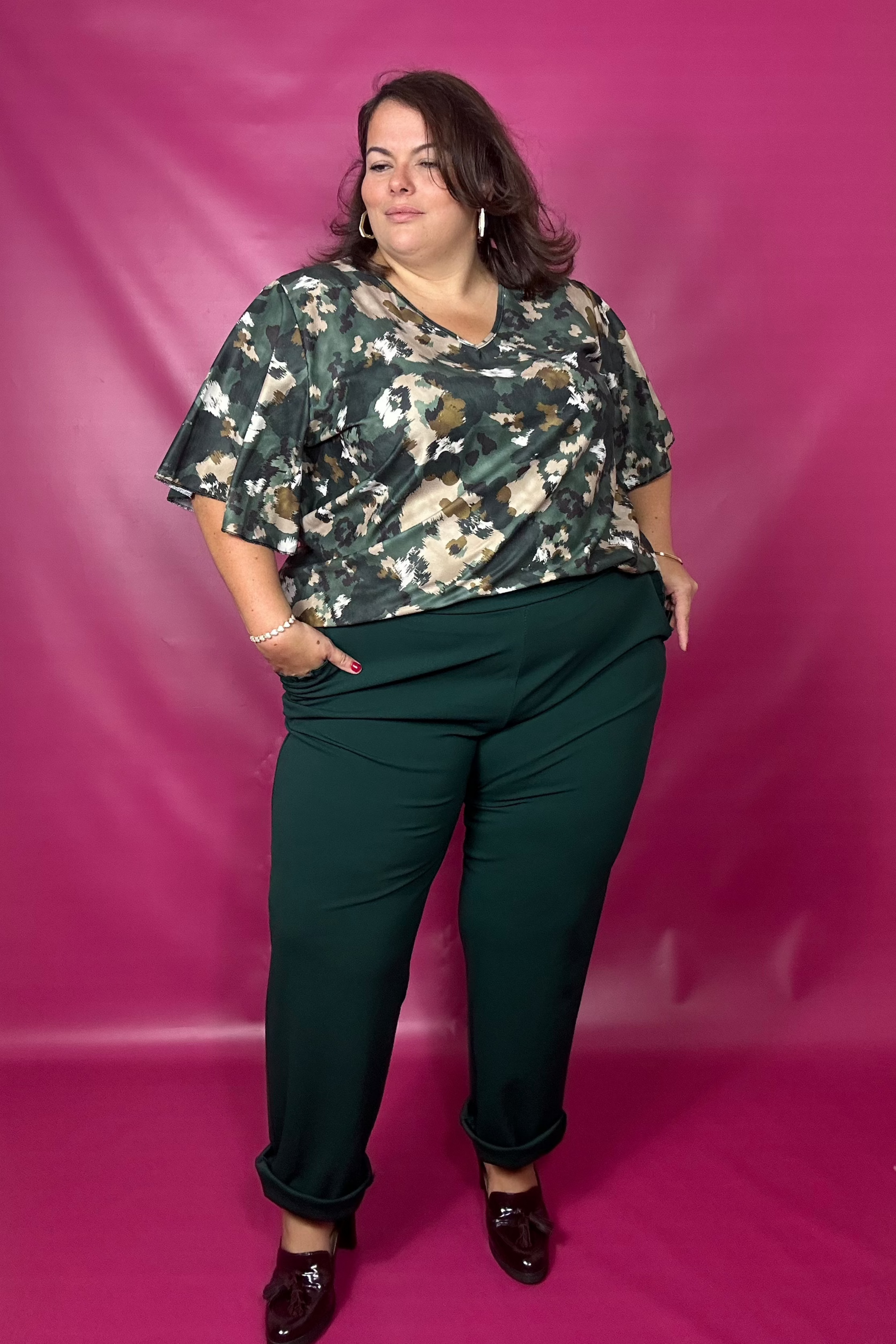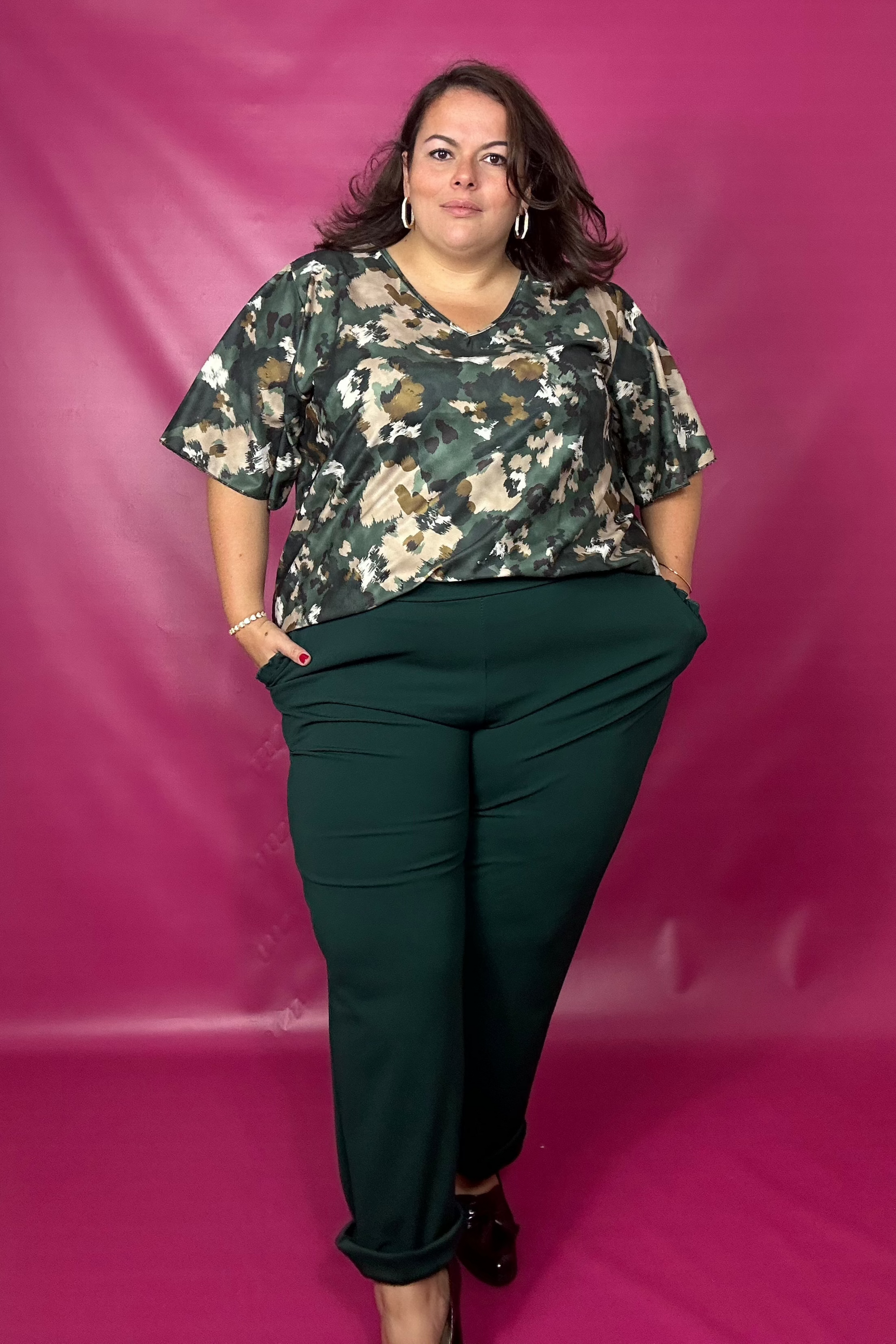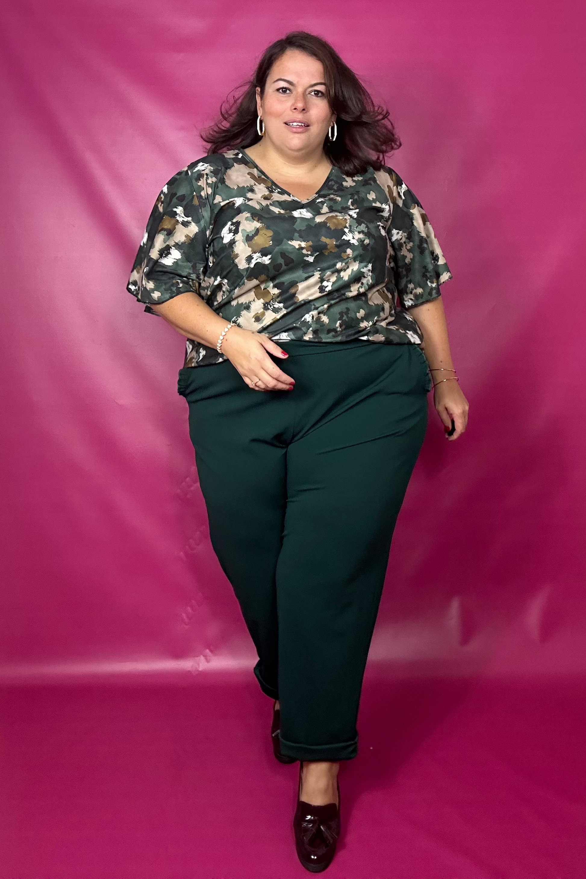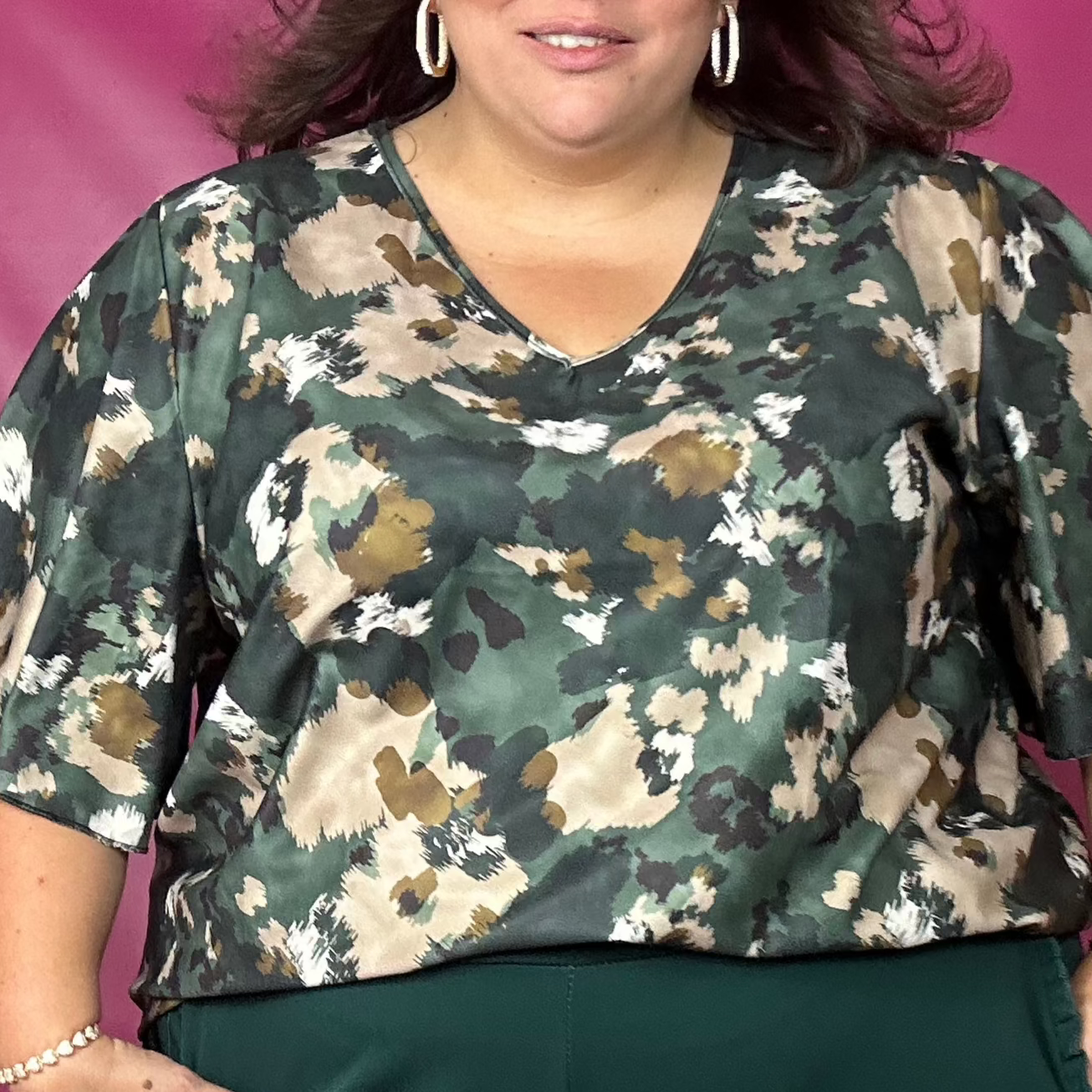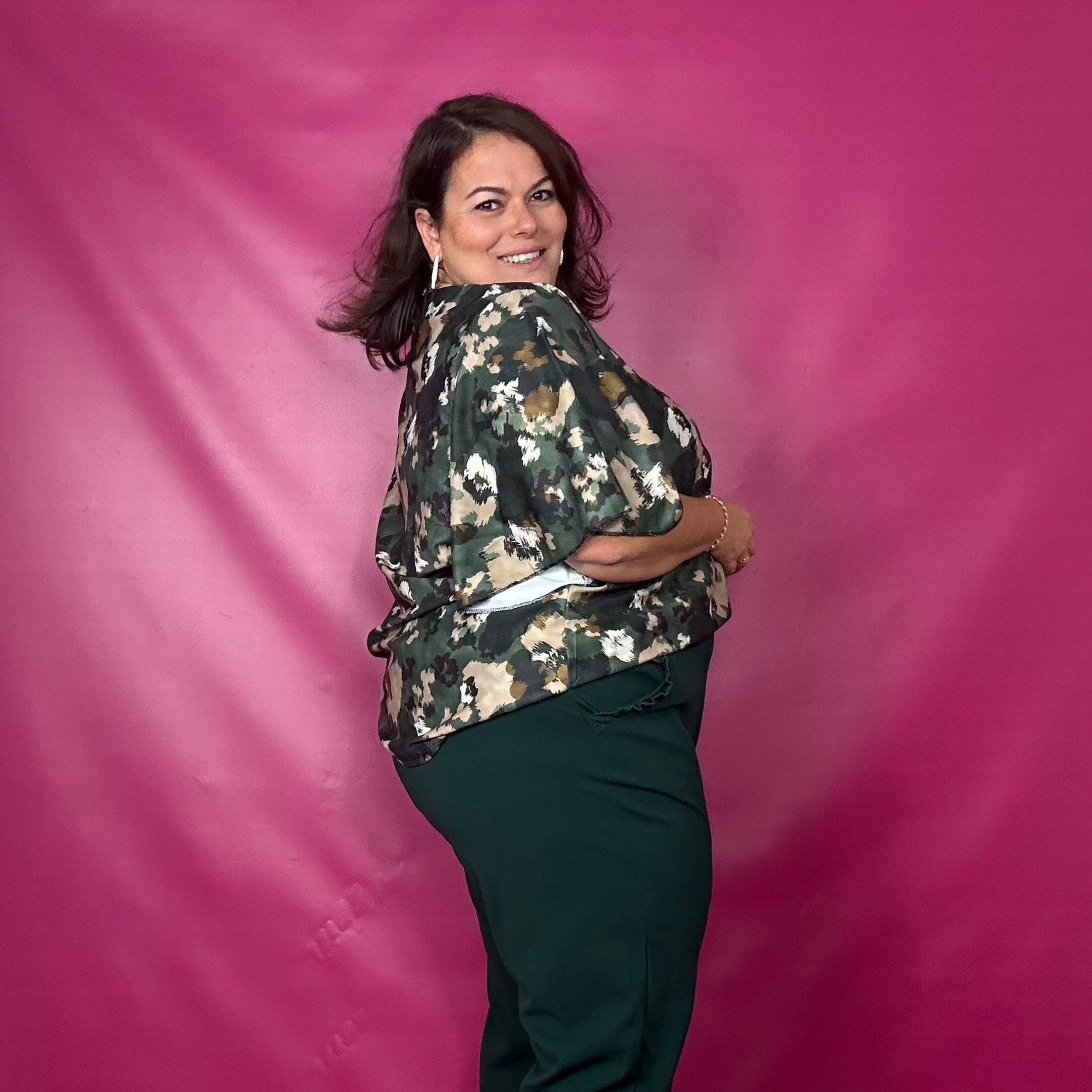 HAUT ELEGANT A MANCHES PAPILLON - CAMOUFLAGE KAKI