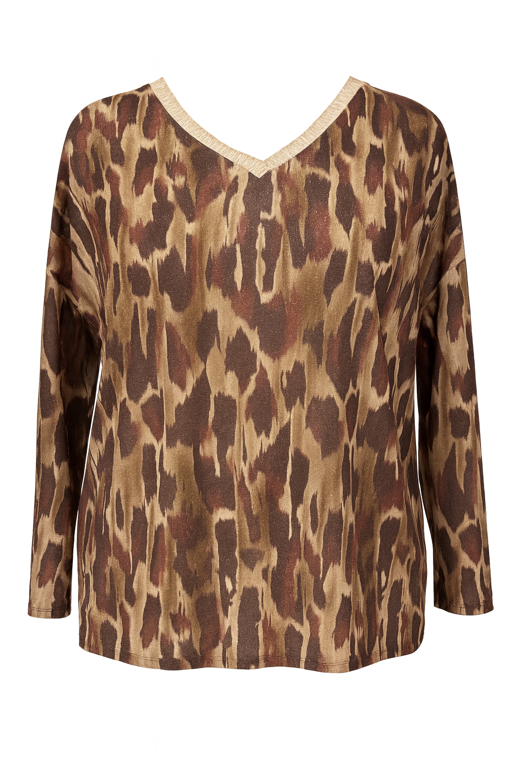 Je suis ronde avec une poitrine généreuse, et l’encolure V tombe parfaitement. Les manches ne serrent pas, la maille est douce et ne colle pas.