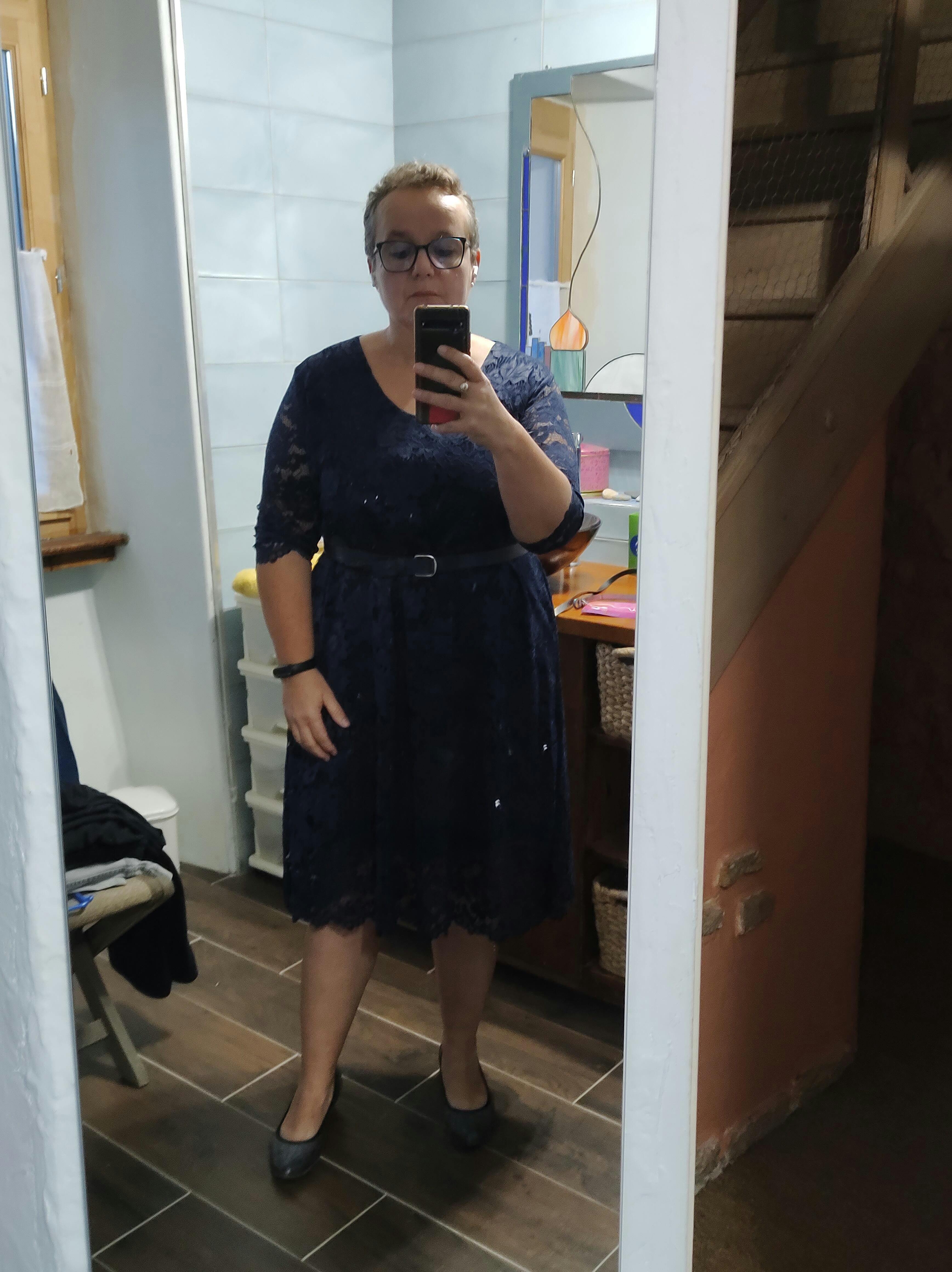 La robe est tout simplement magnifique. Le bleu est vraiment classe. Très agréable à porter ! Ce sera ma tenue pour Noël 😀